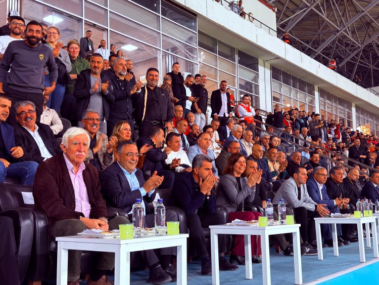 Hevşaredara Şaredariya Bajarê Mezin a Amedê Serra Bucak, Hevberdevka Meclîsa Şaredariya Bajarê Mezin a Amedê, Serokê Klûba Amedsporê Nahît Eren, parlamenter, hevşaredarên navçeyan û nûnerên rêxistinên civaka sivîl bi hev re li Stadyuma Amedê lîstik şopandin.