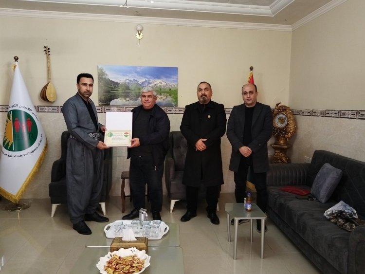 Encûmenê ji bo nasandina erk û xizmeta wan ji bo penaberên li Rojavayê Kurdistanê spasname û pêzanîn pêşkêşî wan kir. Birêz Efrînî her wiha soz da ku di zûtirîn dem de serdana ofîsa Muxtaran bike.