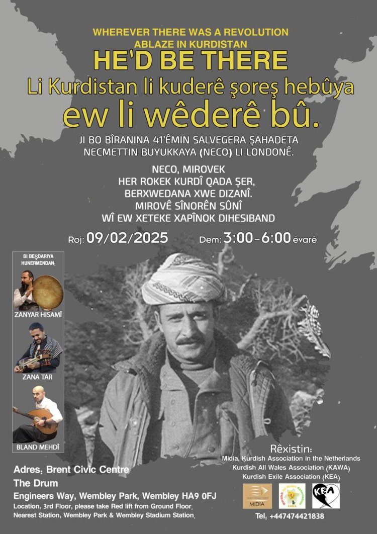 - Komela Kurdî li Weyllz (KAWA), Rêxistina (Kiya) li London û hevalên Şehîd Neco, bi hemahengî li gel yaneya Kurdî "Mîdya" li Holenda, bi beşdarbûn û amadebûna Rêvebirê yaneya Kurdî birêz Serdar Fetah Emîn, bîranîneke rêzgitrtinê tê organîze kirin.