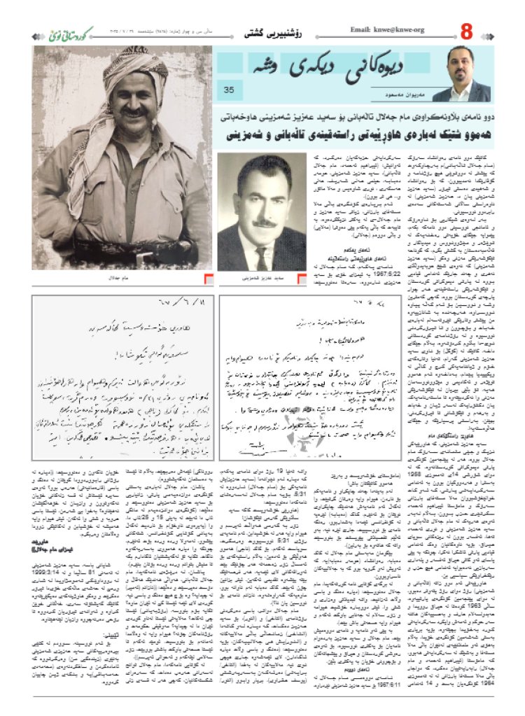 Dema ku min du nameyên Serok Rewanşad (Mam Celal Talebanî) dîtin ku min berê di tu rojname an kovarekê de nedîtibûn, ji bo Rewanşad û şehîdê terorê (Seyîd Ezîz Şemzînî an (Dr. Ezîz Şemzînî) ku wî di navîna salên 1960an de nivîsandibûn.
