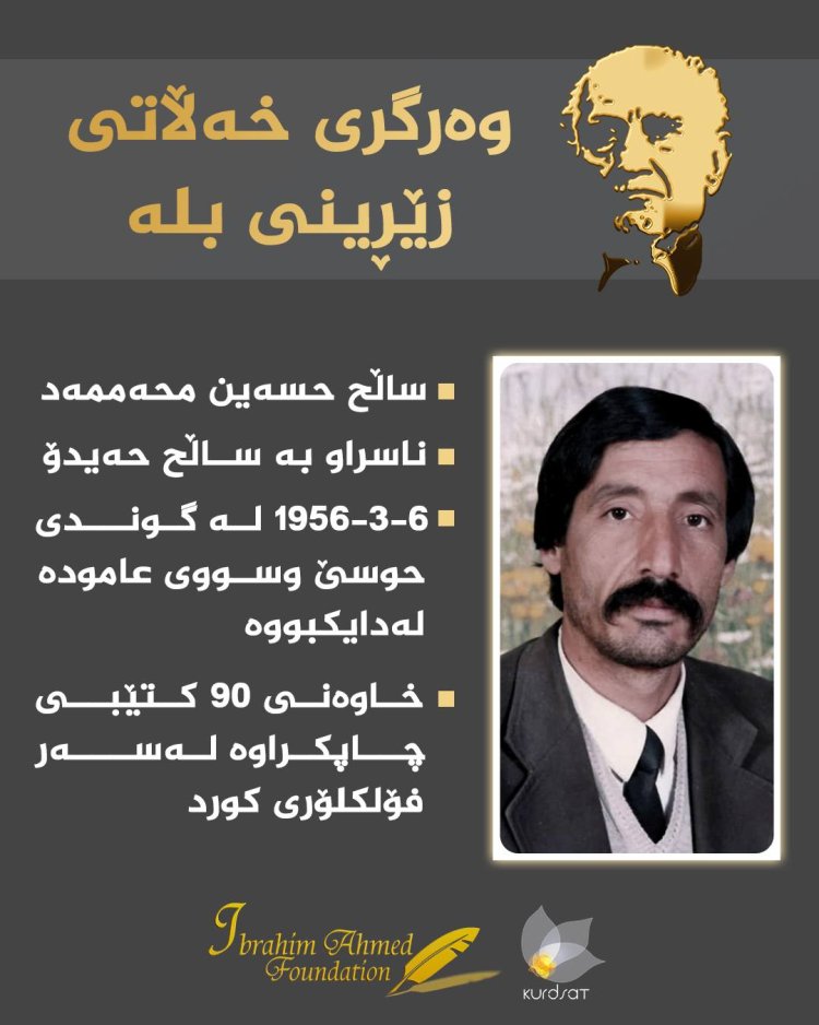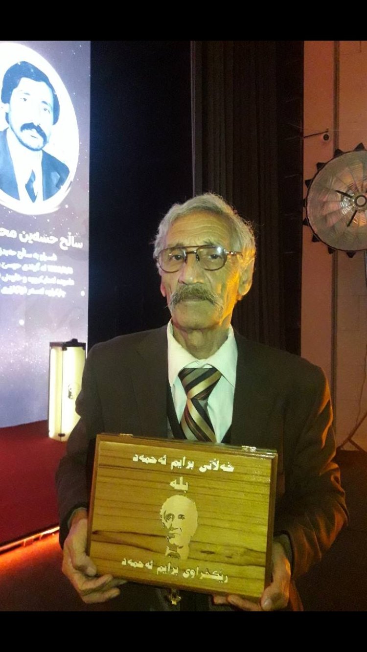Salihê Heydo, rewşenbîr, nîvîskar û helbestvanê kurd ê Rojavayê Kurdistanê xelata zêrîn a Bile li bajarê Silêmaniyê wergirt.